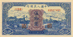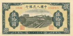 China, Peoples Bank of China: 50 Yuan von 1949