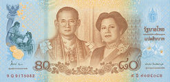 Thailand, Bank of Thailand: 80 Baht BE 2555 (2012), Gedenkbanknote zum 80. Geburtstag von Königin Sirikit
