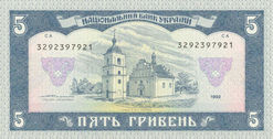 Ukraine, Національний банк України, Ukrainian National Bank: 5 Griwen von 1992 (1996)