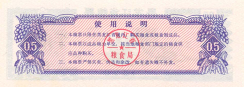 Zhang Wei, ein Sammler dieser Rationskupons, erinnerte sich daran, dass in den 1970er Jahren die durchschnittliche monatliche Ration 15 Kilogramm Reis für einen Mann und 13 Kilogramm für eine Frau betrug. Fleisch war viel seltener, und es wurde auf 0,25 Kilogramm pro Person und Monat rationiert.