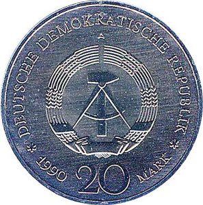 Anfang 1994 wurden dann die Sammler von der Meldung überrascht, dass die Staatsbank der DDR seinerzeit auch eine „Gedenk“-Banknote im Wert zu 20 Mark habe herstellen lassen. Diese Note ist in mehrerer Hinsicht bemerkenswert, da hier erstmals eine Banknote gedruckt wurde, die nach dem Willen des Emittenten keine Zahlungskraft haben sollte.