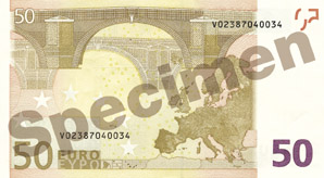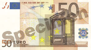 50 Euro, Vorderseite: Renaissance-Fenster;