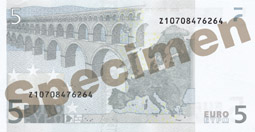 Rückseite: römisches Aquädukt und Europa-Karte.