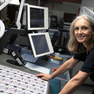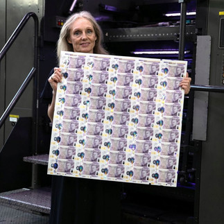 Unsere derzeitige Hauptkassiererin (Chief Cashier) Victoria Cleland begutachtet die neueste Auflage der 20-Pfund-Scheine, die ihre Unterschrift tragen. Diese Scheine kommen nach und nach in Umlauf. Sie ist dafür verantwortlich, dass unsere Banknoten mit der neuesten Technolie zum Fälschungsschutz ausgestattet und dass genügend Banknoten im Umlauf sind.