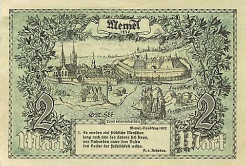 Handelskammer des Memelgebiets, 2 Mark vom 22.2.1922, normale Ausführung mit mehrfarbiger Rückseite (MEM-3)