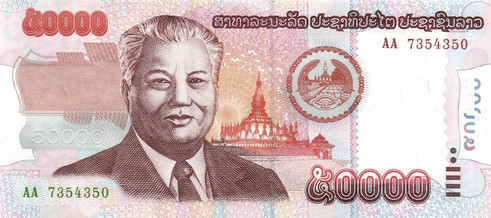Die inflationäre Entwicklung des Kip zwang die Bank ab 1997 zur Ausgabe immer höherer Nominale.