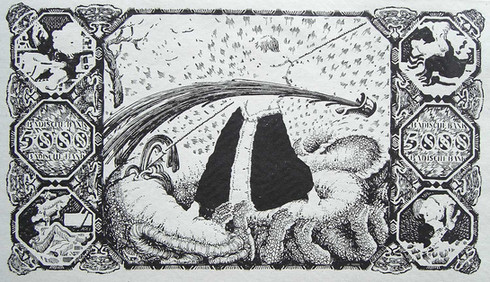 Motivische Vorlage der 5000er-Rückseite: Radierung „Notfried tötet den Drachen“.