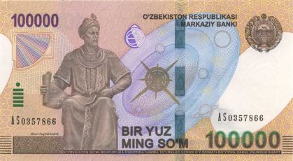 Bereits mit einer Pressemitteilung vom 16. Februar 2019 wurde bekannt gegeben, dass die Zentralbank der Republik Usbekistan plante, am 25. Februar 2019 eine neue Banknote zu 100.000 Som in Umlauf zu geben. Das wäre dann das bislang höchste Nominal des Landes. Wegen der anhaltenden Inflation war die Bank zuletzt 2017 gezwungen, Werte zu 10.000 und 50.000 Som auszugeben. Der Som selbst wurde 1994 in der nach dem Zerfall der Sowjetunion unabhängig gewordenen zentralasitischen Republik eingeführt. 100.000 Som entsprechen derzeit etwa 10 Euro.